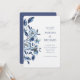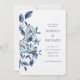 O Convite para Casamento de Monograma Floral de Cor Azul é impresso em papel de alta qualidade. O design é uma aquarela floral nos tons azuis e índios do marinho moderno. O dorso é uma composição floral no mesmo estilo acompanhada pelos monogramas da noiva e do noivo