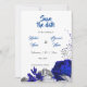 Belo rosa azul real e lírios com flores prateadas botânica, exceto convite para data. Os detalhes de brilho são simulados