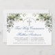 O Primeiro Convite à Comunidade Elegante Moderno inclui folhas de cor aquosa de eucalipto e outras lindas folhagens botânicas verdes. Pó Azul. Silver Cross.