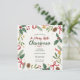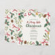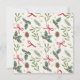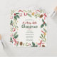 Fresh and natural Christmas invitation featuring a delicate botanical wreath of holly, pine needles, ribbons, bells, and pinecones scattered artfully around the border. The minimalist design with pops of red and gold against a cream background offers a modern take on traditional holiday aesthetics, perfect for contemporary Christmas celebrations.