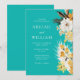 Convites Botanical Sunshine Garden Florals Teal Wedding