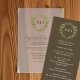 Wedding collection with earth tones of green and dark brown. A gold geometric monogram crest surrounded by botanical leaves.