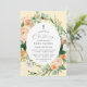 Lindos convites de batismo de Christening apresentando um elegante e moderno tom pastel branco botânico floral em tons suaves de pêssego, laranja, blush suave, amarelos e muitos tons de verde de verde-sábio a verdes brilhantes e profundos. Seus detalhes personalizados são exibidos em um elevado layout tipográfico que coloca a doce menina na frente e no centro.