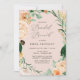 Lindos convites para brunch bridal, com um elegante tom pastel neutro, cor d'água, estrutura floral botânica em tons suaves de pêssego, laranja, pincel suave, amarelos e muitos tons de verde, de verde sábio a verde brilhante e profundo. Seus detalhes personalizados são exibidos em um elevado layout tipográfico que coloca o convidado de honra em frente e no centro.