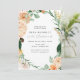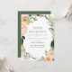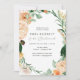 Lindas damas de honra lançam convites com um elegante tom pastel neutro, elegante, quadro verde botânico floral, em tons suaves de pêssego, laranja, blush suave, amarelos e muitos tons de verde, de verde sábio a verde brilhante e profundo. Seus detalhes personalizados são exibidos em um elevado layout tipográfico que coloca o convidado de honra em frente e no centro.