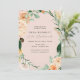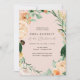 Lindas damas de honra lançam convites com um elegante tom pastel neutro, elegante, quadro verde botânico floral, em tons suaves de pêssego, laranja, blush suave, amarelos e muitos tons de verde, de verde sábio a verde brilhante e profundo. Seus detalhes personalizados são exibidos em um elevado layout tipográfico que coloca o convidado de honra em frente e no centro.
