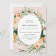 Lindos convites para brunhas de damas de honra, com um elegante tom pastel neutro, elegante, quadro verde botânico floral em tons suaves de pêssego, laranja, blush suave, amarelos, e muitos tons de verde de verde sábio a verdes brilhantes e mais profundos. Seus detalhes personalizados são exibidos em um elevado layout tipográfico que coloca o convidado de honra em frente e no centro.