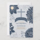 Um grande e cruzado floral ilustra este convite de Natal em tons de azul está pronto para adicionar seu próprio toque pessoal.