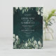 A floresta selvagem é um belo design verde, com folhas de cor aquática rústica contra um fundo verde de caçador escuro. Este tema botânico para um elegante casamento rústico, casamento de verão ou tema florestal evoca romance. A design apresenta um roteiro elegante, rodeado de folhas de cor d'água com tema botânico contra um lindo fundo verde-escuro.