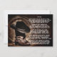 Convite de funeral e anúncio de memorial com chapéu de cowboy, botas e corda em um fundo de madeira. Este anúncio de serviço memorial cowboy tem espaço para o texto de sua escolha na frente, e você pode colocar o poema ou outro texto no verso.