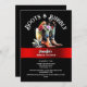 Um par de couros e botas castanhas de vaqueiro é repleto de flores silvestres vermelhas, roxas e laranja e tem um copo aquoso de borbulha com mirtilos, junto a ele, colocado sobre uma banda vermelha horizontal, cintilante, sobre fundo preto. Modelos de texto branco editáveis podem ser personalizadas para se adequarem à sua celebração especial. Este convite para descarregamento de na moda é ideal para um evento especial de temas ocidentais, "botas e borras" no país ou "botas e borbulhas" também.