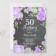 Convite de 50º Aniversário do Botânico Purple Floral. Convite à Mulher para o Aniversário de Peões Rosa Floral Flor Floral de Aquarela. Rosa Rosa Rosa Elegante e Flores de Pêonias. Aniversário Adulto. Fundo Chalkboard. Preto e Branco. 13 15 16º 18º 20 21rua 30 40º 50º 60º 80 de 70 100º, qualquer idade. Para mais personalização, clique no botão "Personalizar" e use nossa ferramenta de design para modificar este modelo.