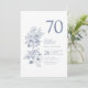 Bolinho Floral Mínimo de Flor Azul e 70 Branco Convite de Aniversário | Convites de aniversário para adultos | Embalagens de 70 branco e azul com poeira floral mínima botânica | 70.a Celebração de Aniversário