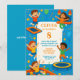 Salta para uma celebração emocionante com esta vibrante design de aventura de recompensa, com crianças alegres a brilhar numa casa de salto colorida, rodeadas por balões brilhantes e um pano de fundo azul festivo. Perfeito para o dia especial de uma criança, esta peça personalizável traz uma grande energia e uma vibração divertida para o partido. Com o seu estilo dinâmico e divertido, é ideal para uma reunião inesquecível. Inclui espaço para os detalhes do evento e informações de RSVP. Personalize-o para criar um encantador guardião para o seu pequeno e convidados!