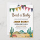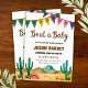 Festa de vamos para um bebê a caminho! Convide seus amigos e família para comemorar com este divertido e festivo convite ao chá de fraldas no Sudoeste. A design apresenta uma charmosa paisagem do deserto com aquarelas com cactos, revestida com uma faixa colorida de pennant. A brincalhona manchete "Bout a Baby" e fontes rústicas criam uma atmosfera quente e celebratória perfeita para honrar os pais a serem. Todos os detalhes da parte são totalmente personalizáveis para seu evento especial.