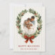 Convites Bow and Greenery Oval Frame Holiday Photo Card
