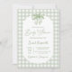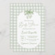 Bow Baby Shower Sage Green invitation with bow, neutral gender sage green gingham baby shower invitation