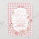 Gingham Floral Blush Pink Bow Baby Shower Invitation,