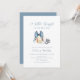 Sport baby shower theme, baseball boy baby shower theme, design feature navy blue watercolor bow baseball with pacifier with calligraphy "A Little Slugger is on the way". Perfect for your baby girl baby shower, you can customize your own unique text and color.