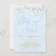 Convites para brunch de chá de fraldas com bonito guião bebê e palavras de brunch em uma cor azul clara de água e fundo de confete dourado. Este convite para apresentação de chás de fraldas azuis e dourados é facilmente personalizado para o seu evento, simplesmente adicionando os seus detalhes no estilo de letra, cor e texto da sua escolha. Este é um design impresso sem brilho real.