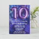 Menino azul roxo 10º convite de aniversário meninos 10 convite de aniversário para um menino roxo azul com escrevendo moderno de escrita e balões de folha divertida.