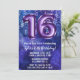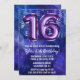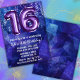 Garoto branco azul 16º convite de aniversário rapazes 16 convites de aniversário para um menino roxo azul com escrevendo moderno de escrita e balões de folha divertida.