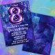 Garoto azul roxo 8º convite de aniversário meninos 8 convite de aniversário para um menino roxo azul com escrevendo moderno de roteiro e balões de folha divertida.