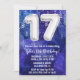 Garoto branco azul 17º convite de aniversário rapazes 17 convites de aniversário para um menino roxo azul com escrevendo moderno de escrita e balões de folha divertida.
