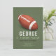 This cute and modern sports-themed kids birthday invitation design features an American football cartoon design on a green background. The invite can be personalized with your boys name and other details necessary for your party. The perfect sports-themed addition to your child's party. This invitation is set for a 12th birthday, but this is easy to edit under 'personalize this template' for a different age!