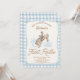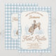 Meninos Xadrez Azul Cowboy Primeiro primeiro aniversario Rodeio Convite para Sweet first rodeo temed primeira convite de aniversário do rapaz com vaqueiro e cavalo, cabeçalho de fonte estilo corda, estrutura de corda e xadrez de búfalos azul claro ou fundo de padrão gingham. Este primeiro convite de aniversário rodeio também apresenta uma paisagem desértica ocidental fraca. A versão com sapato de cavalo também está disponível na loja.