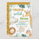 Convites Boys Brown Cheetah Print Young Wild Three Birthday