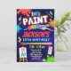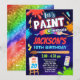 Tinta de vamos e comemore! Personalize seus próprios convites de aniversário de festas de arte com cores divertidas do arco-íris.
