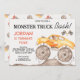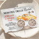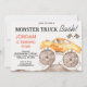 Boys Yellow Monster Monster Bash Birthday Convite para monstros Rapazes Rapazes Rapazes Monstros Amarelos Monstros Monstros Monstros Chamaram-lhe qualquer convite de aniversário com caminhões de monstros amarelos, sujeira e bandeiras. Este convite de aniversário para caminhoneiros também mostra uma foto na janela de caminhões e é ideal para uma festa de aniversário temática de caminhoneiros monstros.