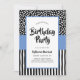 Bolinhas brancas e pretas brancas e brancas e listras tortas, acentuadas por azul violeta.