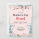 Primavera azul Elegante Flores selvagens e Rosa Dia de as mães Chic Brunch Convite. Uma bela celebração com a mãe e as flores. Personalize este modelo com suas informações. Fundo de rosa claro na frente e branco com flores na parte de trás. A cor é personalizável.