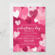 Corações Rosa Personalizados Convite Brunch para o Dia de Galentine. Nome personalizado e endereço do dia de Galentine Brunch convites de festas magenta com corações cor-de-rosa.