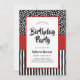 Bolinhas brancas e pretas brancas e brancas e listras tortas, acentuadas por vermelho.