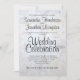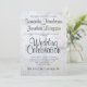 Este belo convite para o casamento apresenta um texto negro sobre um fundo de reflexo de flores brancas de pénia e corações com ondulações e ondas de reflexões. É clássico e moderno, e é uma maneira maravilhosa de convidar convidados a compartilhar a celebração do seu dia especial. O texto apresenta letras negras em uma fonte moderna de script.