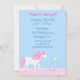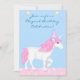Um Unicórnio Branco e Rosa, num Convite de aniversário Mágico para Meninas de Fundo Azul Claro. Personalize com todos os detalhes do seu partido.