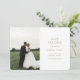Moderno e chique. Este maravilhoso casamento, salvar o cartão de data, apresenta uma bela buquê de rosas volutuosos contra um fundo verde-oliva-chique no fundo, enquanto a frente fica limpa com um conjunto de fontes contemporâneas e fotos de casal.