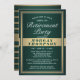Se as circunstâncias impedirem a comemoração habitual, conecte-se com a família e os amigos a uma distância segura com um na moda ou um grupo de aposentadoria de drive-through! Todo o texto neste modelo é simples de personalizar para um desfile de carros distanciamento social ou evento de videoconferência com zoom virtual com bate-papo online na internet. Também é possível incluir uma mensagem pessoal, se necessário, devido a um cancelamento ou adiamento. O design verde, branco e dourado apresenta um fundo polar moderno, bordas e listras falsas, caligrafia elegante de script e deco de arte vintage inspirada na tipografia. Observe que o ouro é impresso a cores, não em folhas metálicas. Este modelo de convite está preparado para uma aposentadoria, mas também pode ser para uma festa de despedida.