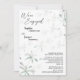 Este branco verde moderno que estamos engajados, design de convite para noivado de apresenta uma mistura fácil e estilos coordenadores de preto e branco com elementos verdes delicados, acrescentando um florescimento gracioso em torno de uma simples tipografia sofisticada e um encantador roteiro de caligrafia mínimo. A aquarela eucalipto e outras folhas botânicas se espalham lindamente, com a esmeralda escura esmaecendo em um efeito sombrio em verde-menta claro - para adicionar apenas um toque clássico de natureza rústica a um pano de fundo contemporâneo neutro. Esta coleção maravilhosa criaria perfeitamente um ar de elegância polida para o seu casamento formal ou casual de sonho ou outro evento especial. Tal como acontece com todos os nossos designs, se tiverem perguntas ou pedidos especiais, por favor contactem-nos.