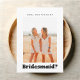 Proponha às suas damas de honra em estilo com esta carta encantadora. A frente mostra sua foto favorita junto com a pergunta sentida, "Você será minha dama de honra?" A palavra "dama de honra" é destacada em uma letra de laje divertida e ousada, adornada com detalhes cardíacos bonitos. Faça sua proposta inesquecível!