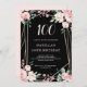 Procurando um belo e elegante convite de aniversário? Veja o nosso convite floral preto e rosa pincelado com um incrível quadro geométrico dourado! Este convite personalizável é perfeito para qualquer celebração de aniversário, seja um doce 16, 30, ou 60. As delicadas flores cor-de-rosa acrescentam um toque de feminilidade, enquanto a estrutura dourada proporciona um toque de sofisticação. Além disso, ele também está disponível como um download instantâneo.