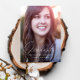 Convite para festa de formatura de fotos de script elegante com uma frente de foto de cheio e uma cor branca e dourada na parte traseira da placa com detalhes da festa.