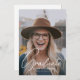 Este convite casual de festa de formatura ao estilo boho apresenta uma foto do formando, com a moderna cobertura de roteiro branco, juntamente com o nome do formando, a escola e o ano de aulas de graduação. A parte traseira do convite contém todas as informações da parte e o local. Substitua o exemplo de foto por sua própria foto de formando. Basta substituir esta foto por sua própria foto formal ou casual que mostra sua própria personalidade.