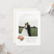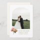 Moderno e chique. Este casamento encantador salve o cartão de data apresenta uma bela buquê de rosas volutuosas contra fundos brancos e marfim. O design inclui uma foto de casal no quadro de arco de inicialização, conjunto contemporâneo de fontes em verde-oliva na frente e texto opcional adicional no verso.