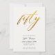 Um modelo branco e dourado, vidro, moderno, elegante e chic do 50º convite de aniversário, com a palavra "cinquenta" coberta em folha de ouro (este é um efeito digital), moderno roteiro caligráfico e tipografia em tons de ouro, com fundo preto no verso. Um design de eterno para uma mulher no seu quinquagésimo aniversário.