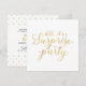 Celebre seu dia especial com este modelo na moda moderno de convites de festas. Este design apresenta uma caligrafia texturizada de ouro cônico com fundo branco.