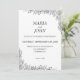 Convite de casamento sutil e sofisticado, preto e branco, com um design decorativo. Um estilo minimalista que nunca sai da moda combina elegância clássica com um olhar moderno. Perfeito para casais que querem mantê-lo em classe, enfatizando a singularidade do seu dia.